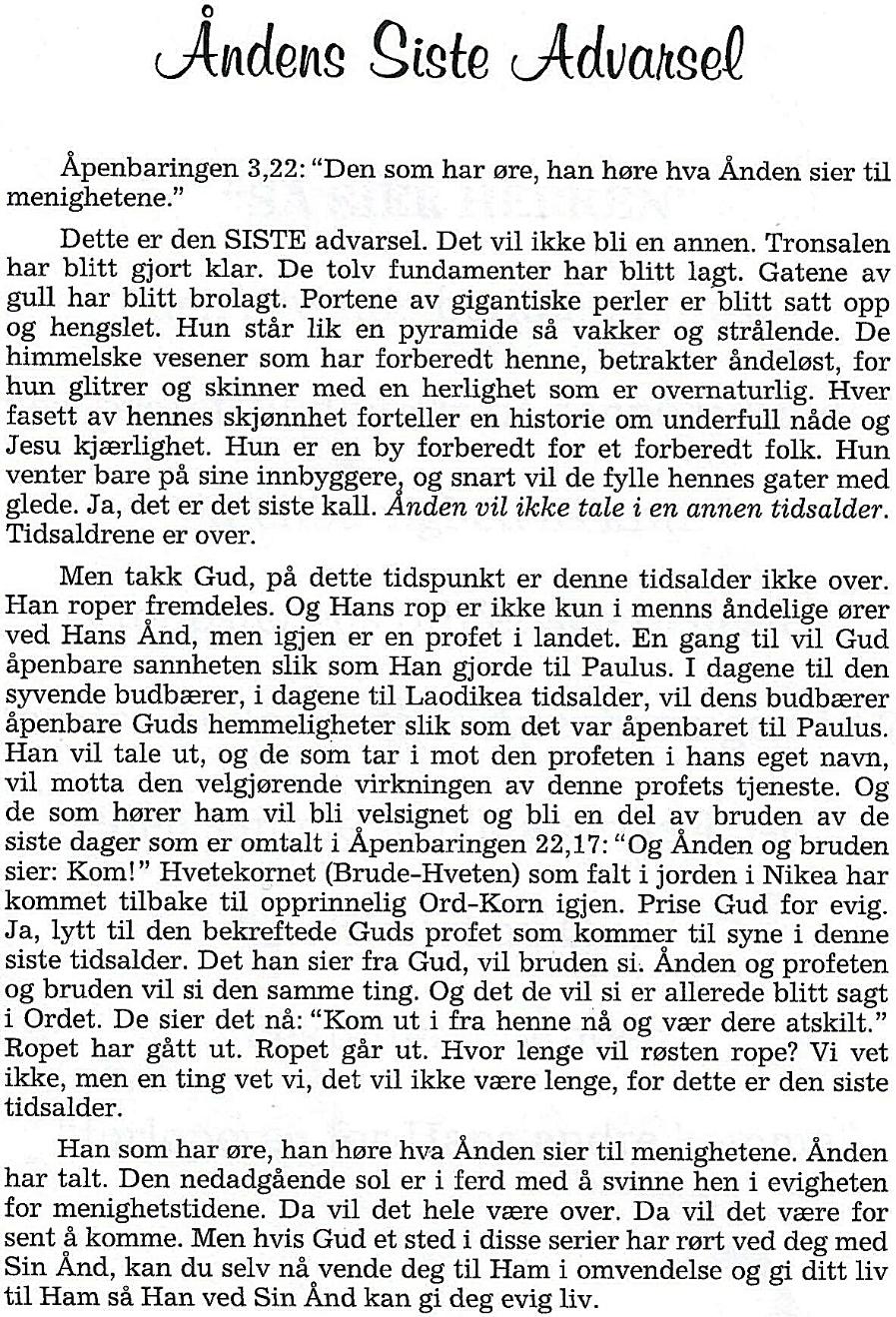 Så til avslutning i dette brevet vil jeg legge til et utdrag fra Profetordet: