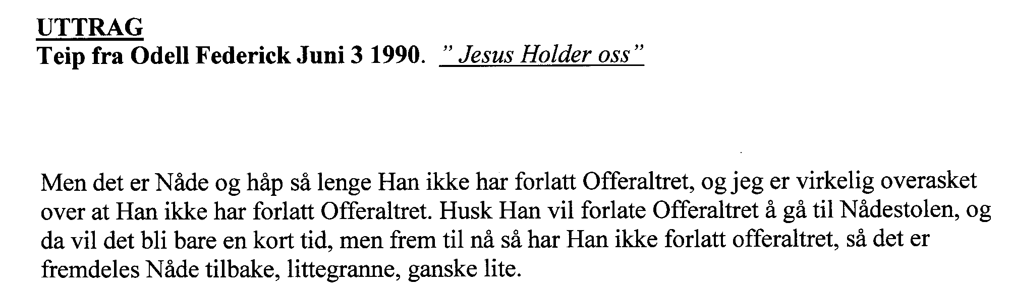 Dette som ble talt gjennom den Profetiske gaven som var på Odell Federick er å ligne med disse skriftsteder som følger her, når Ordet kommer tilbake til Lederskapet: